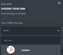 - Type βHubSpotβ into the search bar that appears and select that CRM: